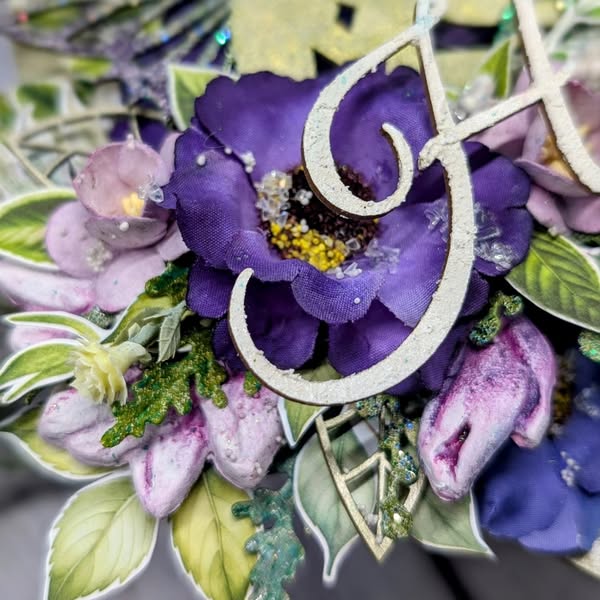 Użyłam tekturkowych listków, kwiaty, napis oraz prześliczną wróżkę.
